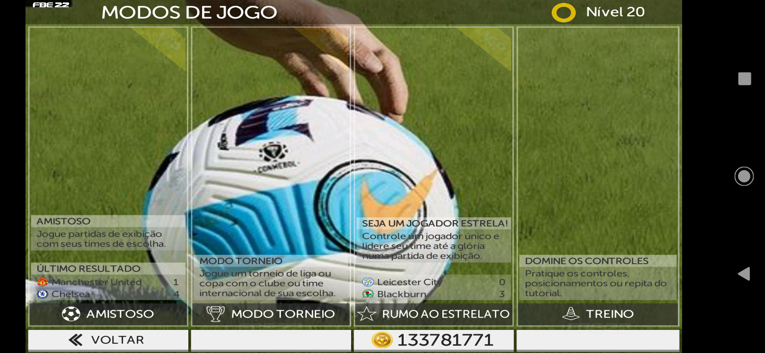 No modo amistoso, você poderá escolher qualquer time de sua escolha para uma partida amigável. No modo torneio, você poderá escolher as principais ligas e copas do mundo para jogar em suas mãos, como (Liga Brasileira A/B, Liga Uruguaia, Liga Chilena, Liga Argentina e etc). No modo de treino, poderá criar uma formação principal, e treinar o time. O First Touch Soccer 2022 é um jogo de futebol com ótimos gráficos, um poderoso simulador e um enorme conjunto de opções. Um jogo brilhante que não deve absolutamente nada para o FIFA e PES ou outros populares jogos de futebol para Android.